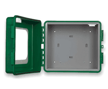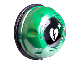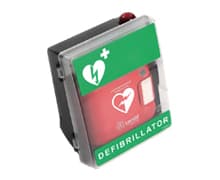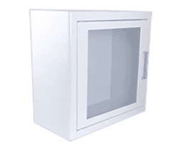 Trygg och synlig förvaring av hjärtstartare. Det finns skåp i olika modeller för såväl inomhus- som utomhusmiljöer. Beroende på behov och krav finns det i olika utföranden med larm och värme.