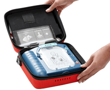 Standard bärväska till HeartStart HS1. Med plats för ett par extra elektroder samt ett extra batteri. Litet fönster för att kunna kontrollera att statusindikatorn blinkar.