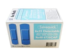 Salvequick Blå detachable-plåster är allergitestade och av hög kvalitet. Desas plåster upptäcks av de flesta metalldetektorer som används inom livsmedelsindustrin. Den blå färgen gör också att plåstret är lätt att upptäcka visuellt. För bästa hygien vid livsmedelshantering är den absorberande sårdynan indragen en bit från plåsterkanten så att plåstret sluter tätt kring såret. Plåstren är extra mjuka och följsamma.