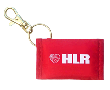 Röd nyckelring med HLR-tryck som innehåller FaceShield ansiktsskydd.