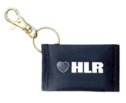 Svart nyckelring med HLR-tryck som innehåller FaceShield ansiktsskydd.